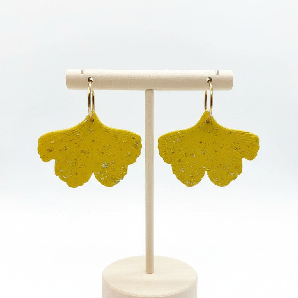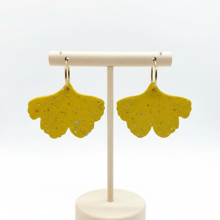 Une paire de boucles d'oreilles ginkgo splatter doré