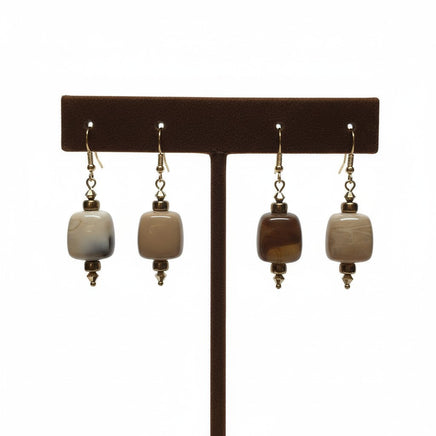 Boucles d’oreilles aux perles géométriques, subtilement déclinées dans des nuances de vert et de gris. Leur association de perles lisses et d’éléments dorés crée un contraste élégant, à la fois moderne et chaleureux. Un accessoire authentique qui apporte une touche de caractère et d’harmonie naturelle à toutes vos tenues.