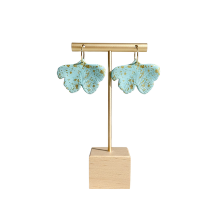 Une paire de boucles d'oreilles ginkgo splatter doré