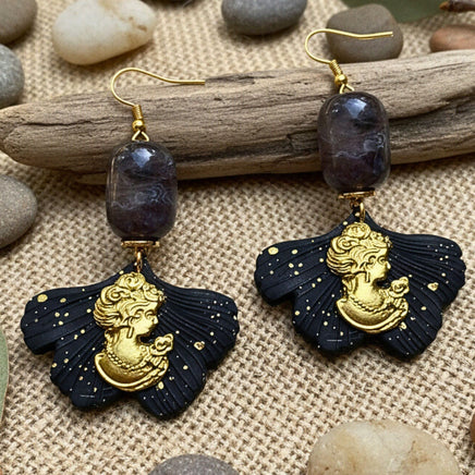 Une paire de boucles d'oreilles ginkgo splatter doré