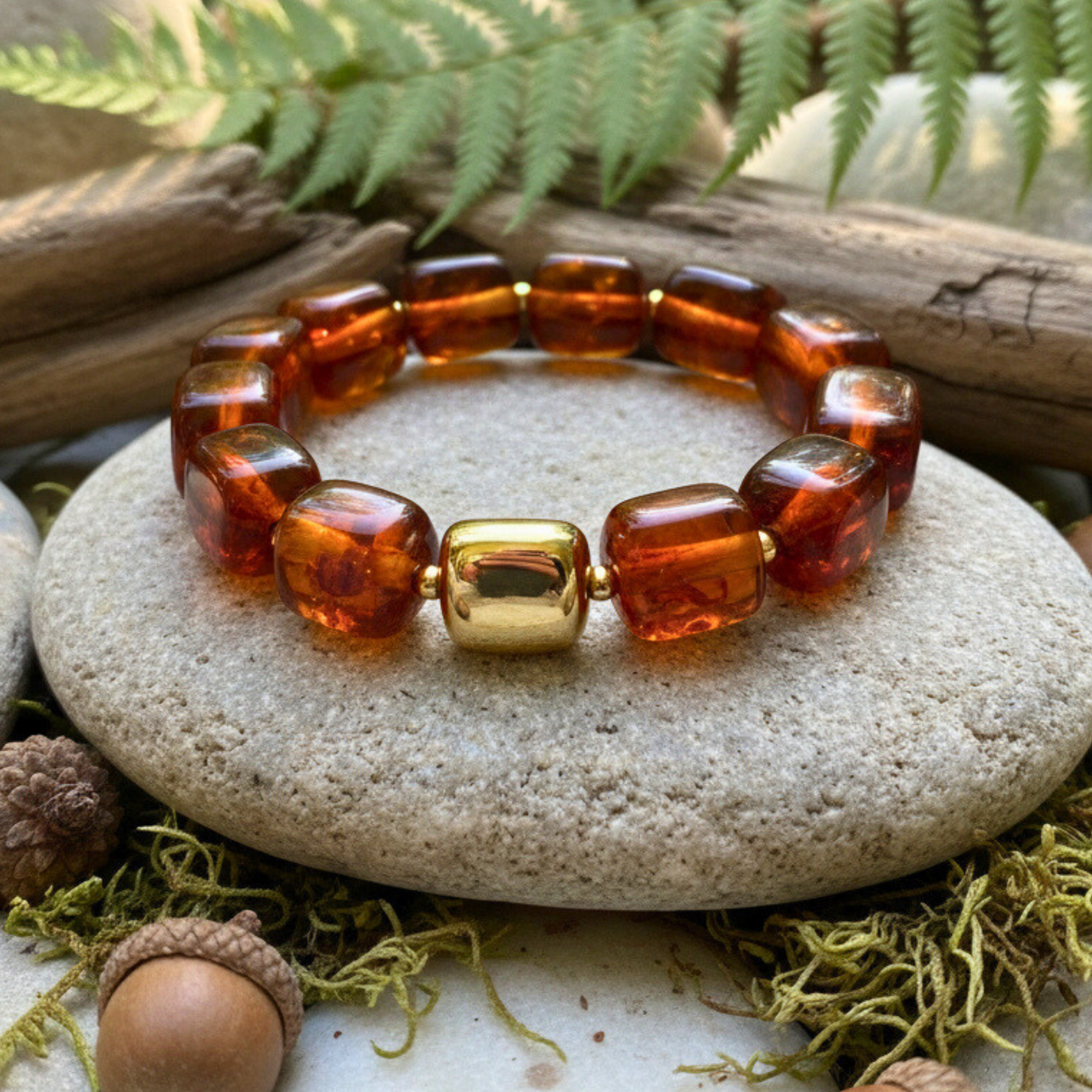 Ce bracelet met à l’honneur la couleurs ambre, intense et raffinée.