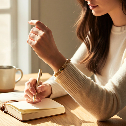 Ce bracelet met à l’honneur la couleurs Nougat marbré, intense et raffinée.