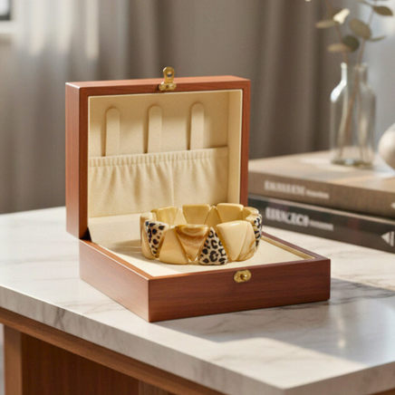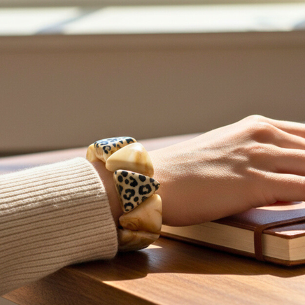 Élégant et solaire, le bracelet triangle nougat marbré se distingue par son design géométrique en acrylique.