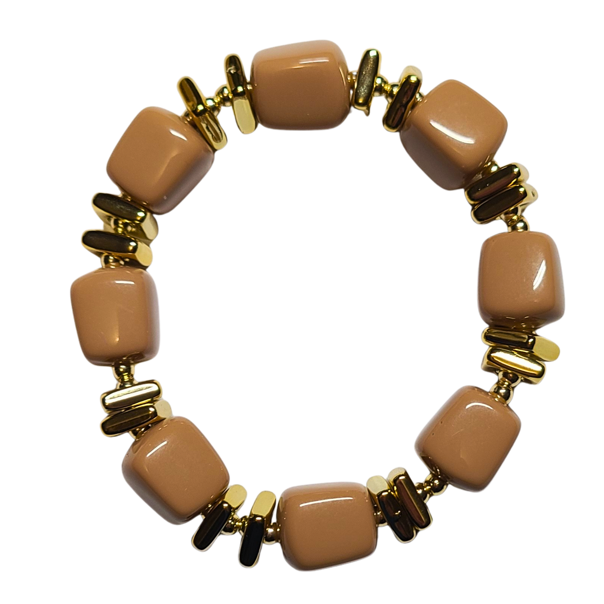Ce bracelet met à l’honneur la couleurs camel, intense et raffinée.