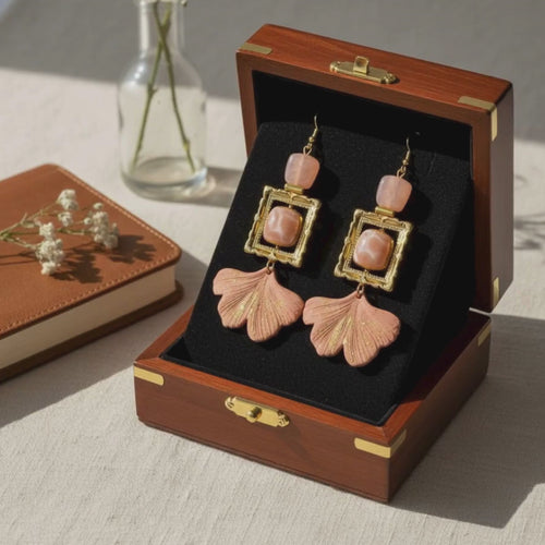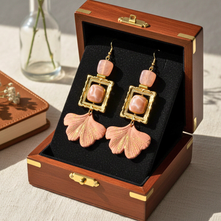 Boucles d’oreilles élégantes inspirées des parfums et des feuilles de ginkgo, mêlant finesse des détails et design léger. Un accessoire raffiné qui apporte une touche naturelle et poétique à toutes vos tenues