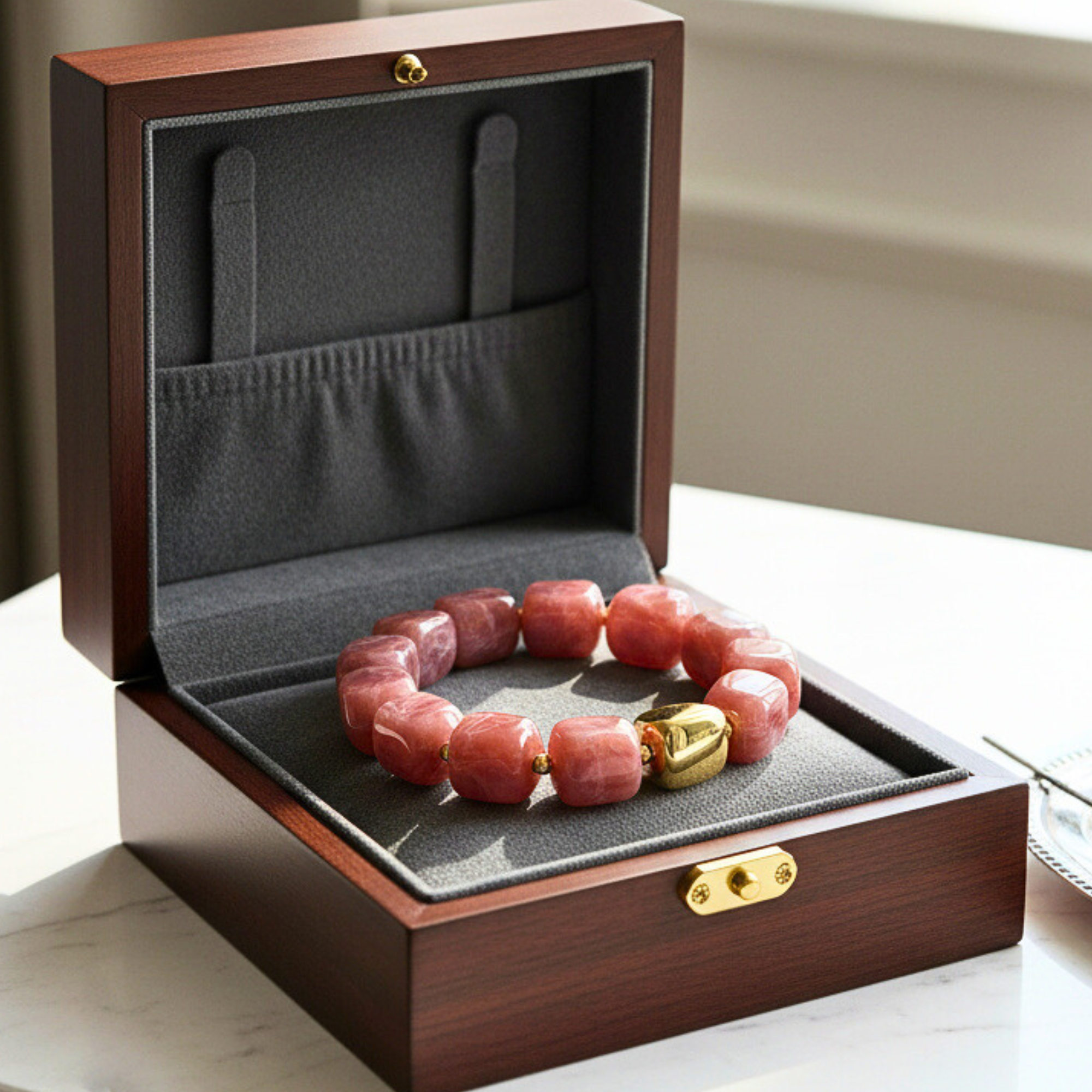 Ce bracelet met à l’honneur la couleurs rose ancien, intense et raffinée.