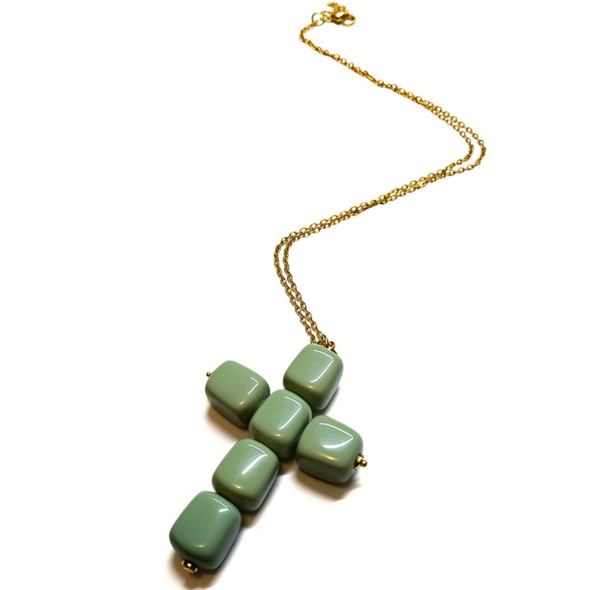 Collier au charme chaleureux, composé de perles cube en acrylique assortis et d'une fine chainette doré. Un collier idéal pour sublimer vos tenues avec une allure authentique et intemporelle.