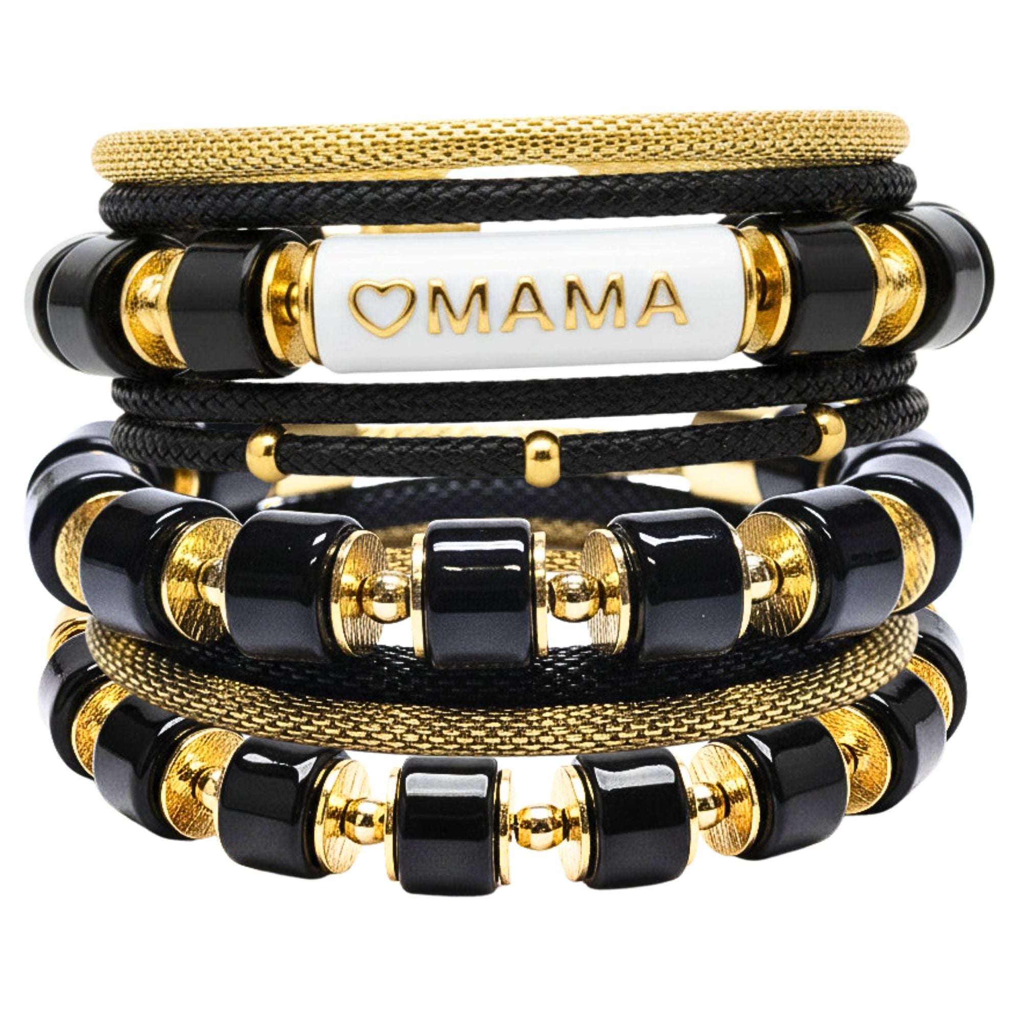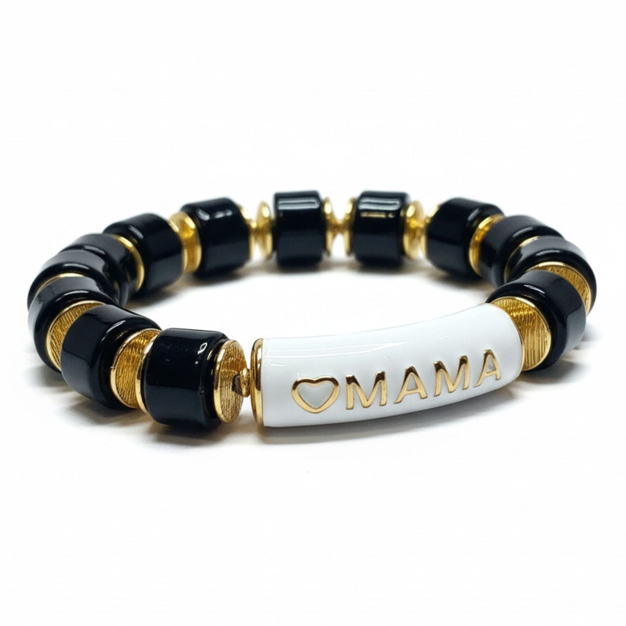 Un mélange harmonieux de noir profond et d’or lumineux, pensé pour apporter une touche chic à chaque tenue. Le détail qui fait toute la différence : tube émaillé ornée du mot MAMA et d’un petit cœur, symbole de douceur, de force et d’amour.