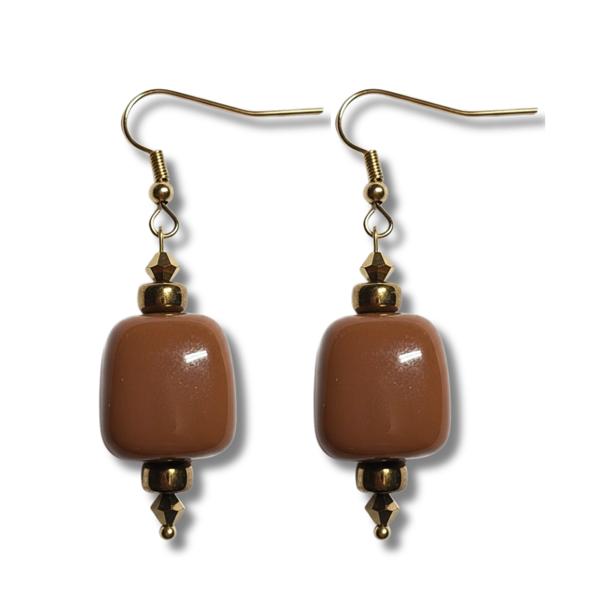 Boucles d’oreilles aux perles géométriques, subtilement déclinées dans des nuances de vert et de gris. Leur association de perles lisses et d’éléments dorés crée un contraste élégant, à la fois moderne et chaleureux. Un accessoire authentique qui apporte une touche de caractère et d’harmonie naturelle à toutes vos tenues.