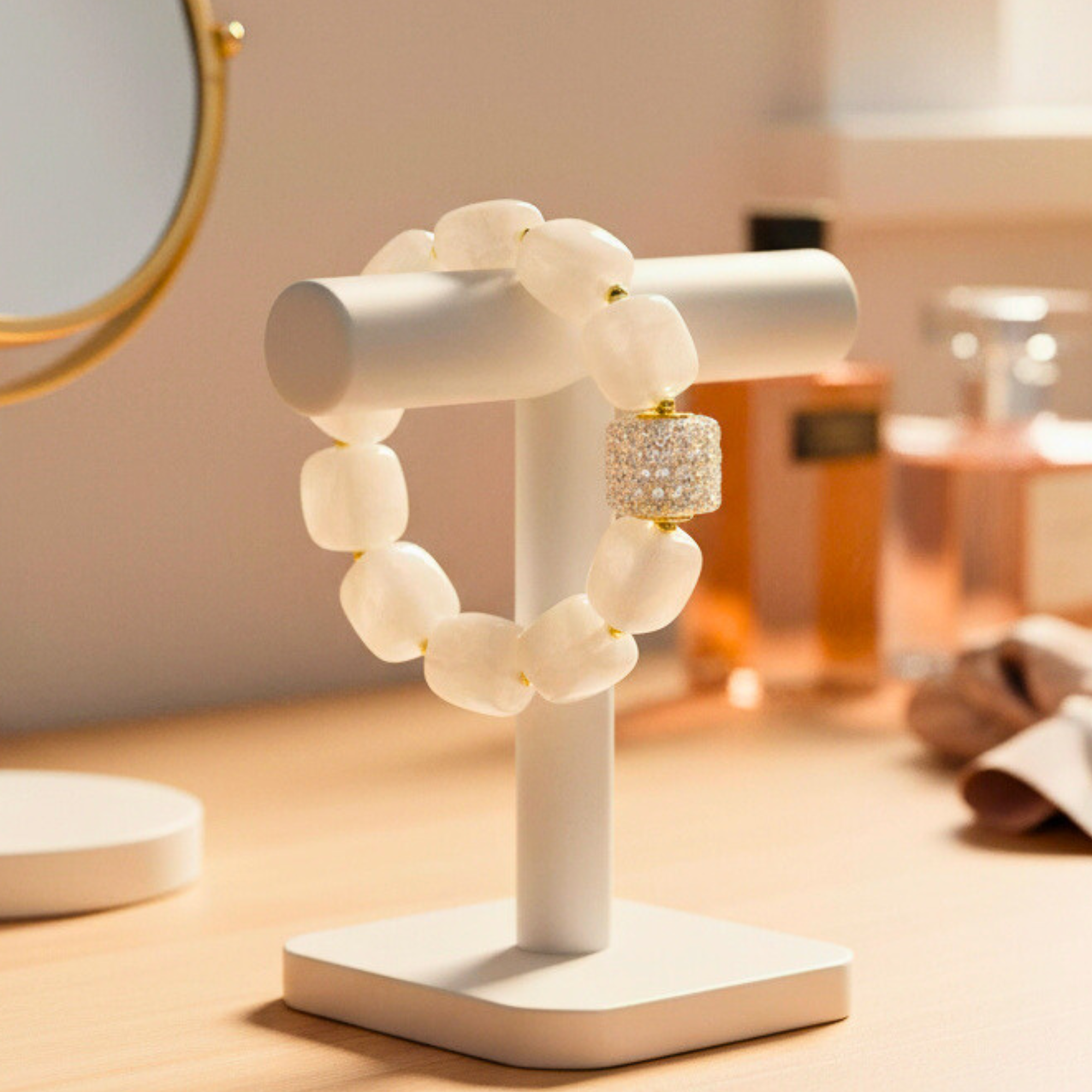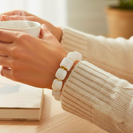 Ce bracelet met à l’honneur la couleurs blanc, intense et raffinée.