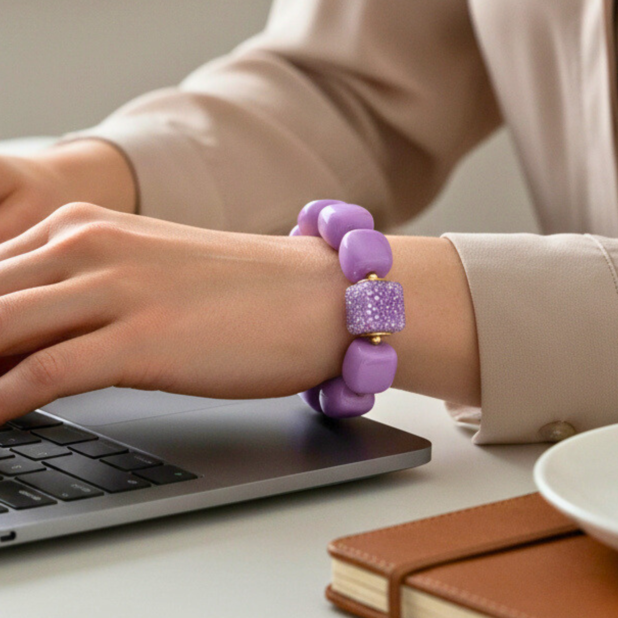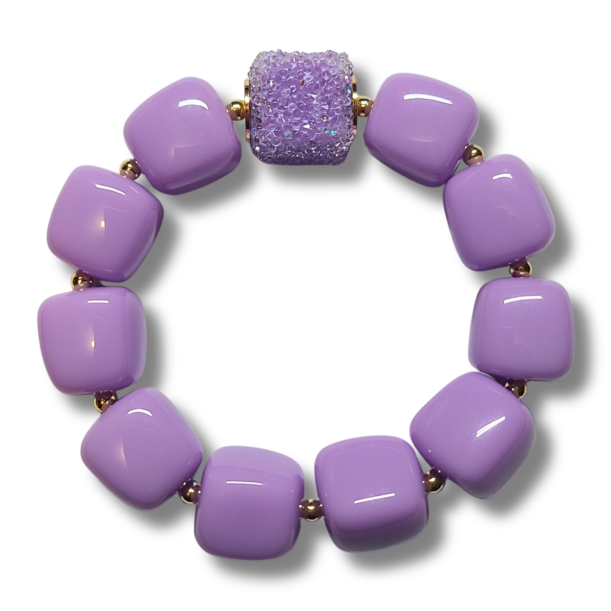Ce bracelet met à l’honneur la couleurs lavande, intense et raffinée.