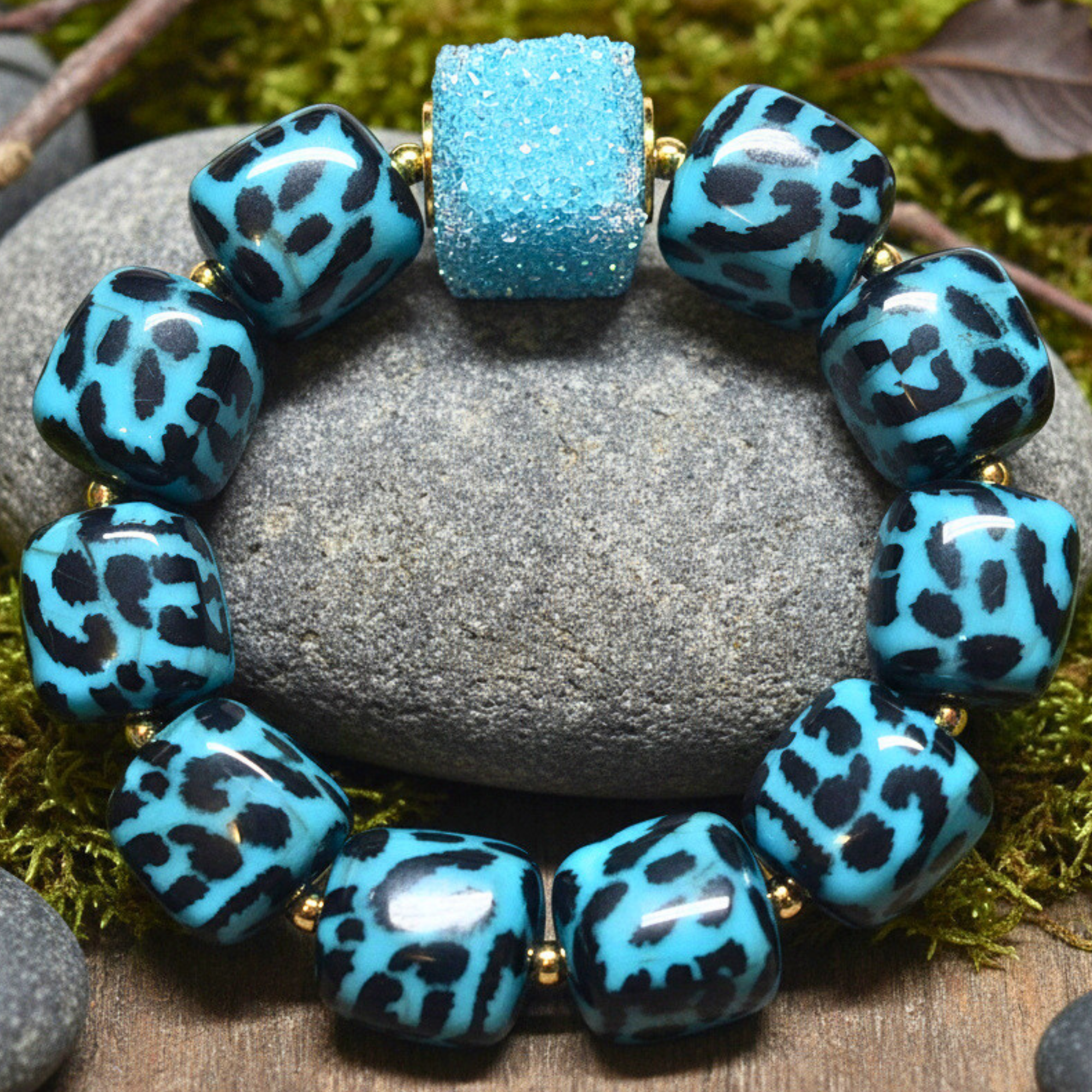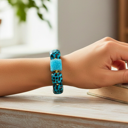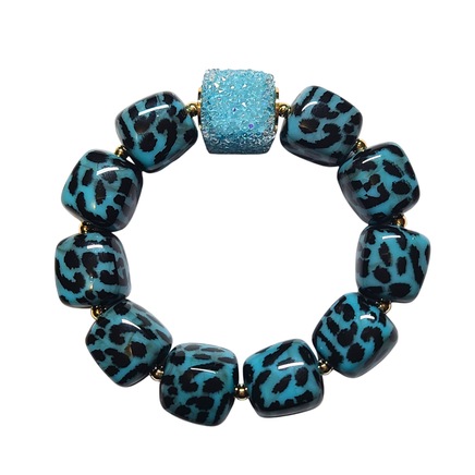 Ce bracelet met à l’honneur la couleurs turquoise, intense et raffinée.
