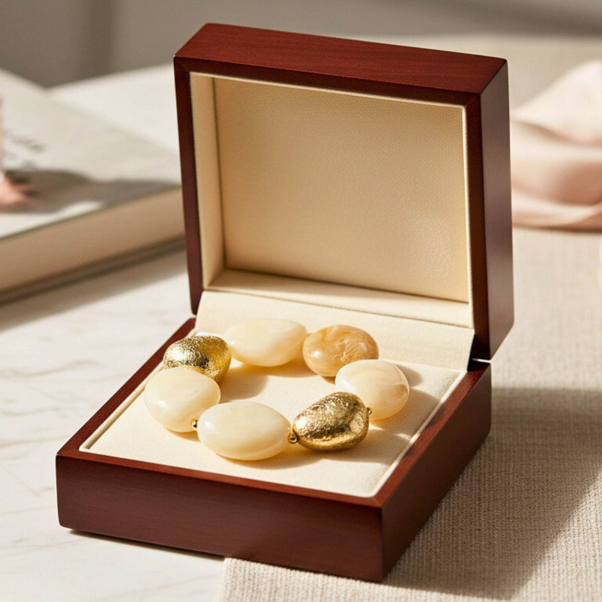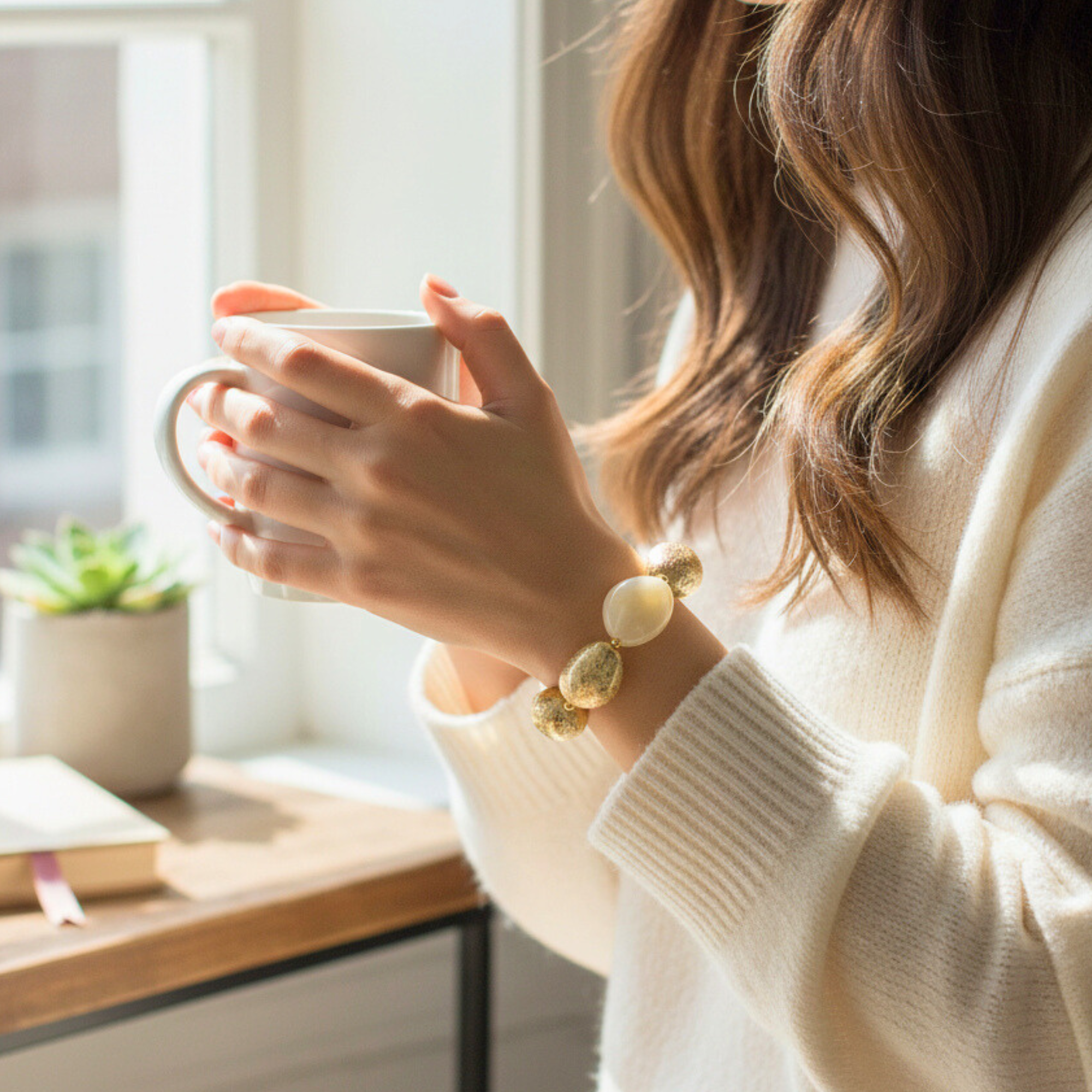 Bracelet galets Ivoire– Délicat & Raffiné
